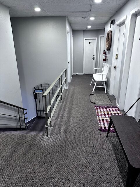 – updated ceiling tiles, lights and carpet flooring